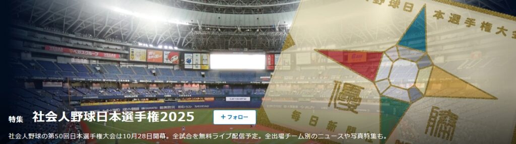 社会人野球日本選手権ホームページへは、下記ボタンをクリック!ライフ配信もあるようですよ。